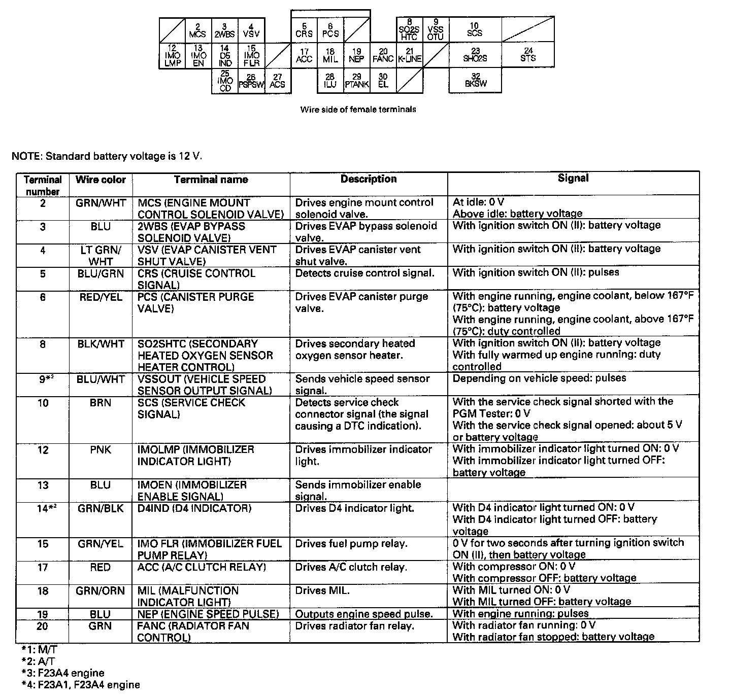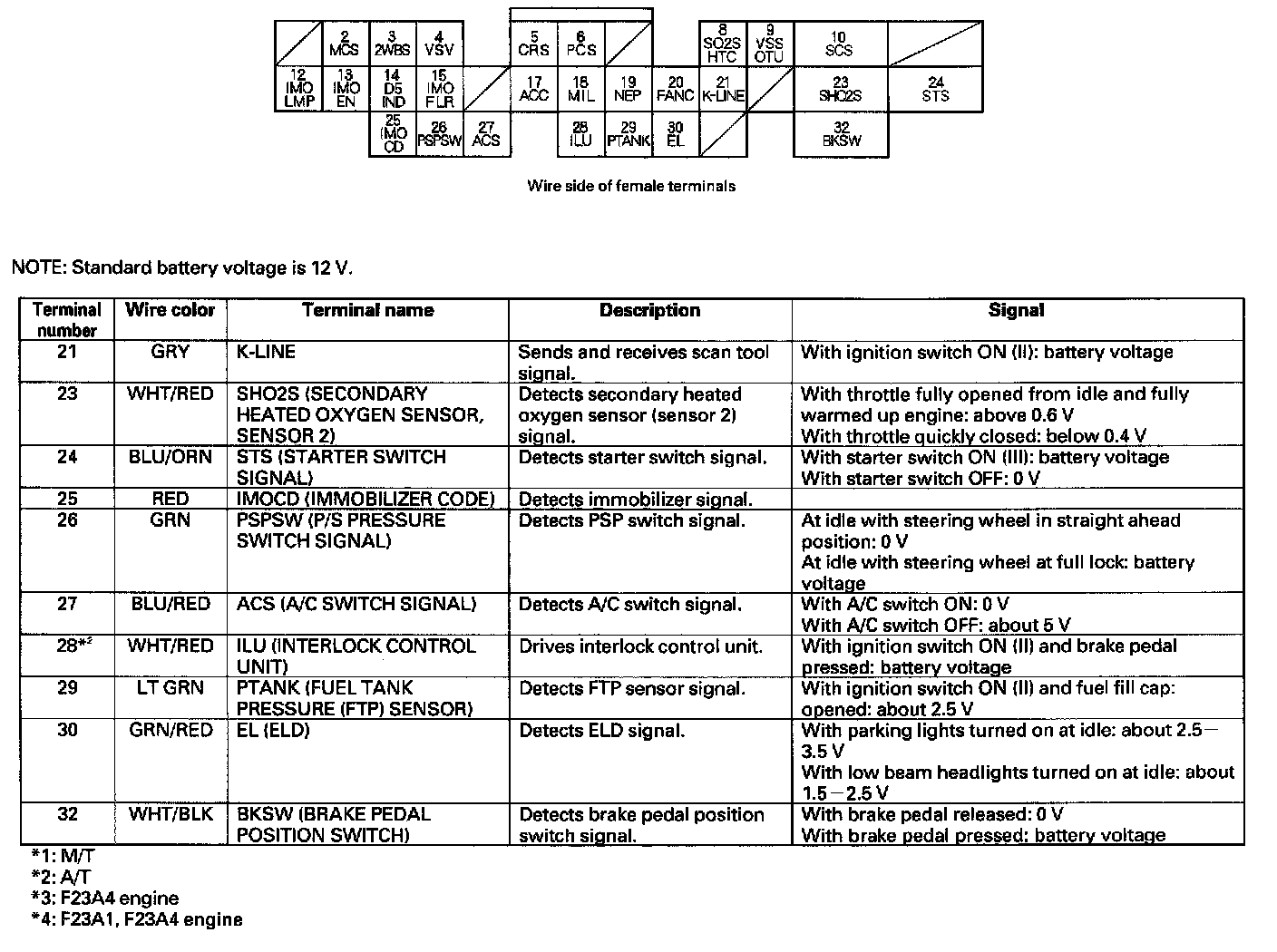 ECM/PCM Inputs And Outputs At Connector A (32P) Part 2: