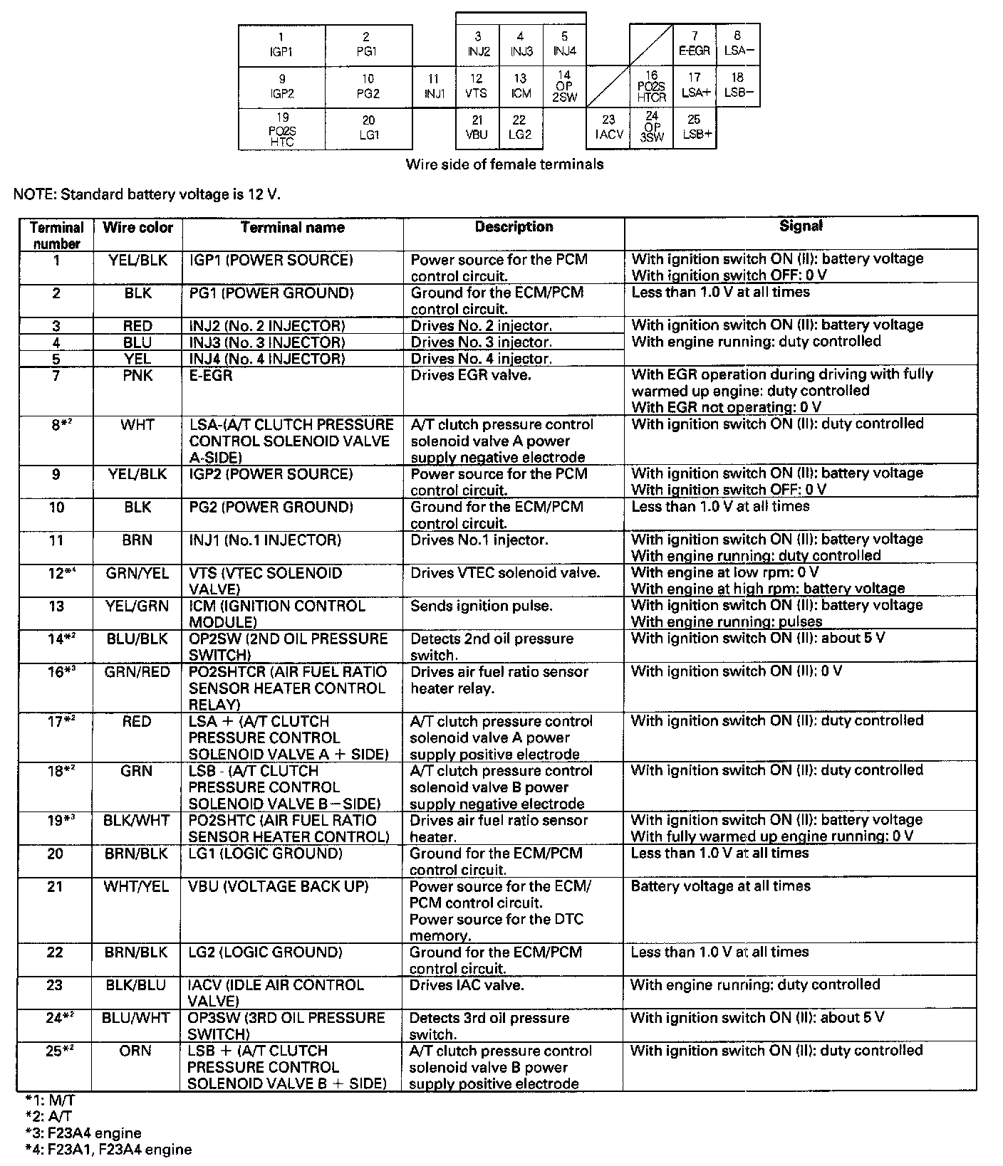 ECM/PCM Inputs And Outputs At Connector B (25P):
