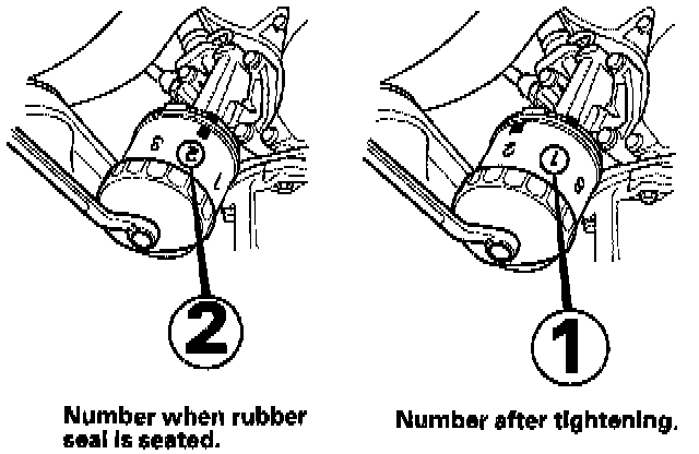 - Tighten the filter by turning it clockwise seven numbers from the one you noted. For example, if number 2 is at the bottom when the seal is lightly seated, tighten the filter until the number 1 comes around to the bottom.