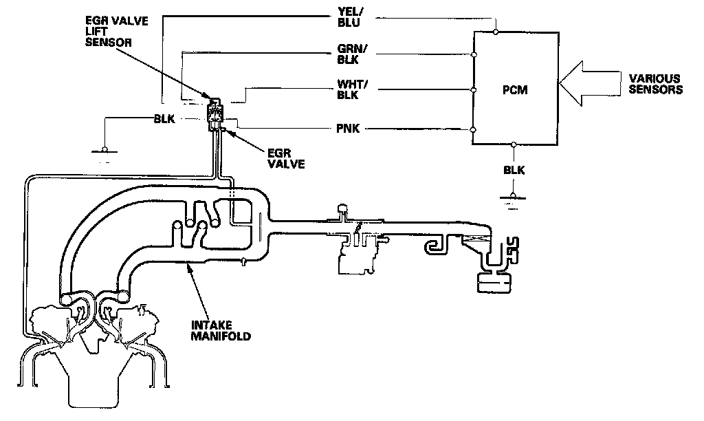 The EGR system reduces oxides of nitrogen (NOx) emissions by recirculating exhaust gas through the EGR valve and the intake manifold into the combustion chambers. The PCM memory includes the ideal EGR valve lift for varying operating conditions.