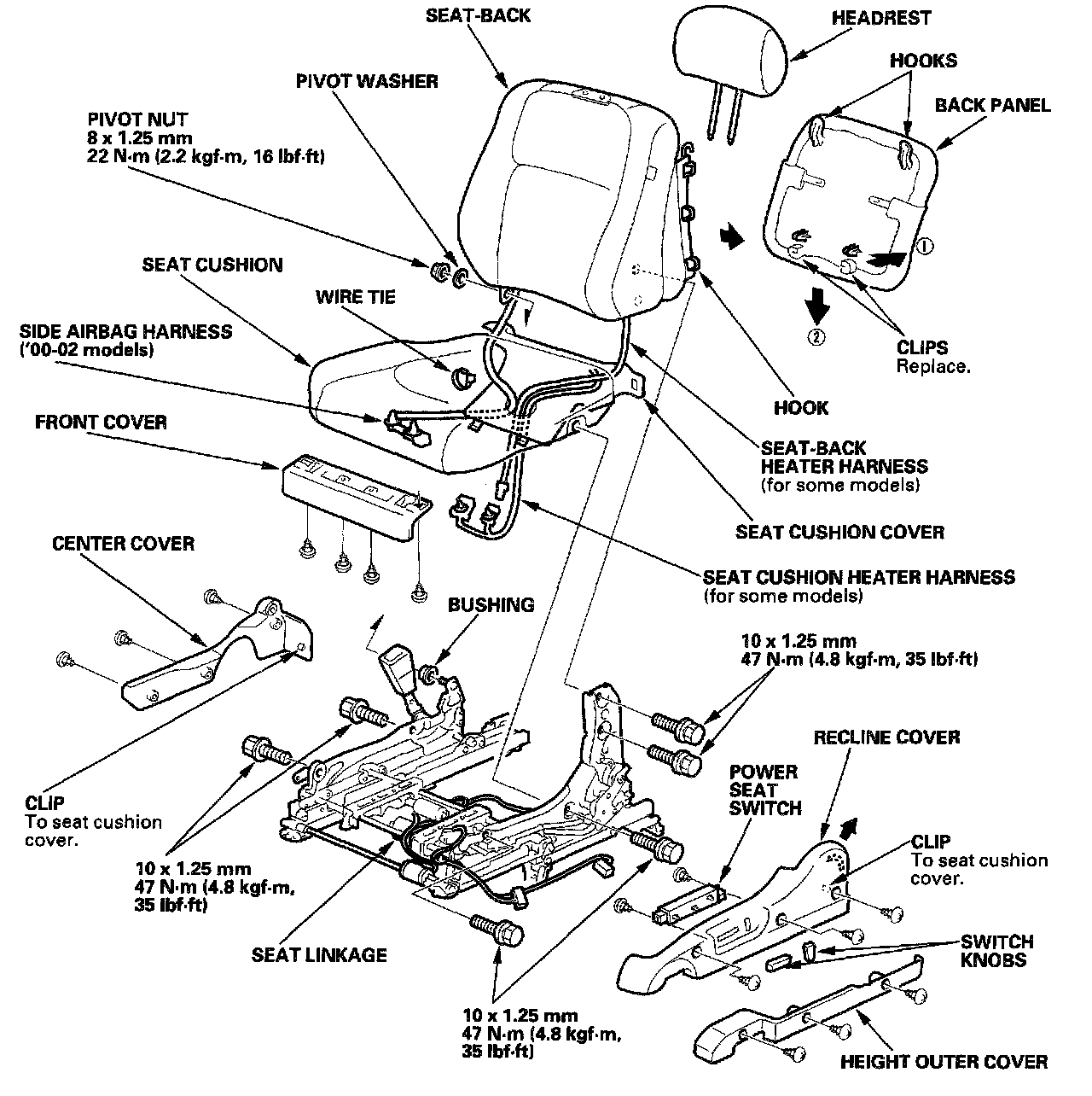 Disassemble the front seat as shown.