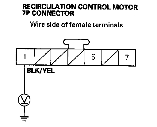 4. Measure the voltage between the No.1 terminal of the recirculation control motor 7P connector and body ground.