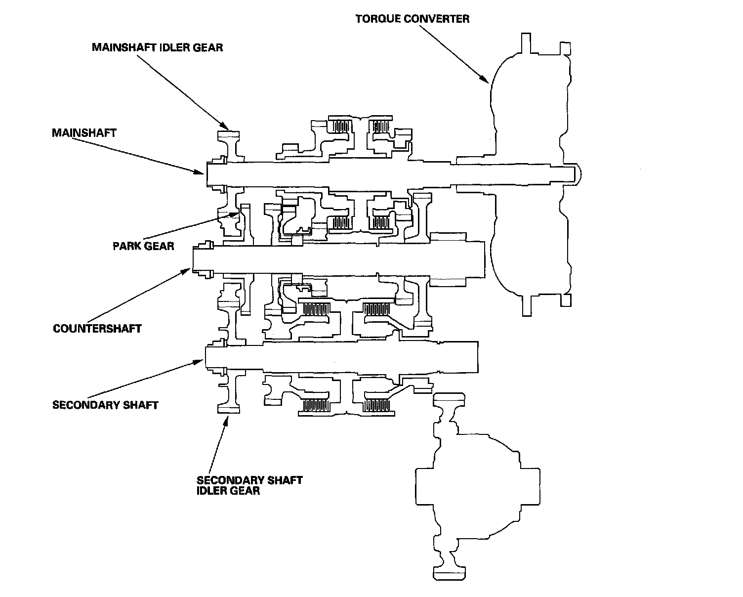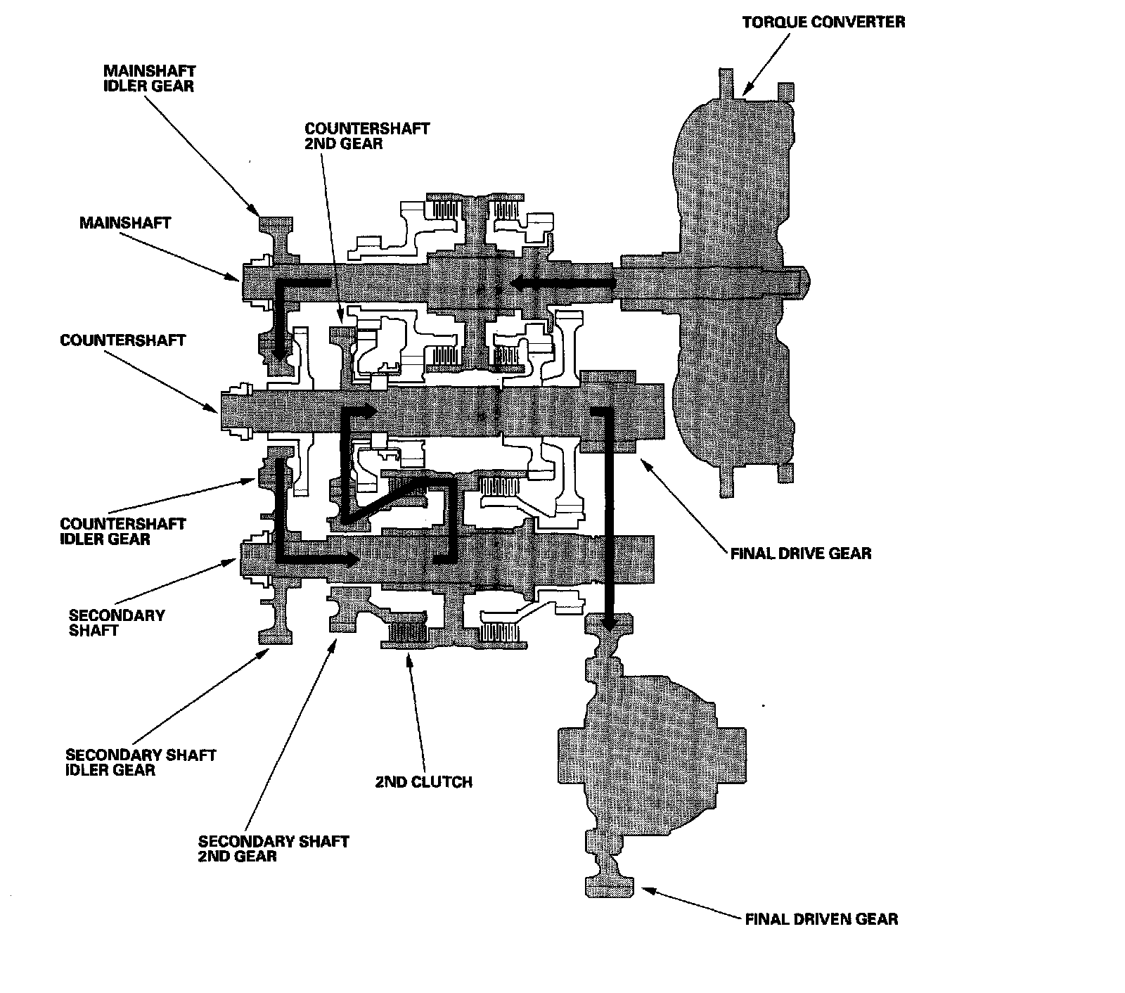 - The mainshaft idler gear drives the secondary shaft via the countershaft idler gear and secondary shaft idler gear.