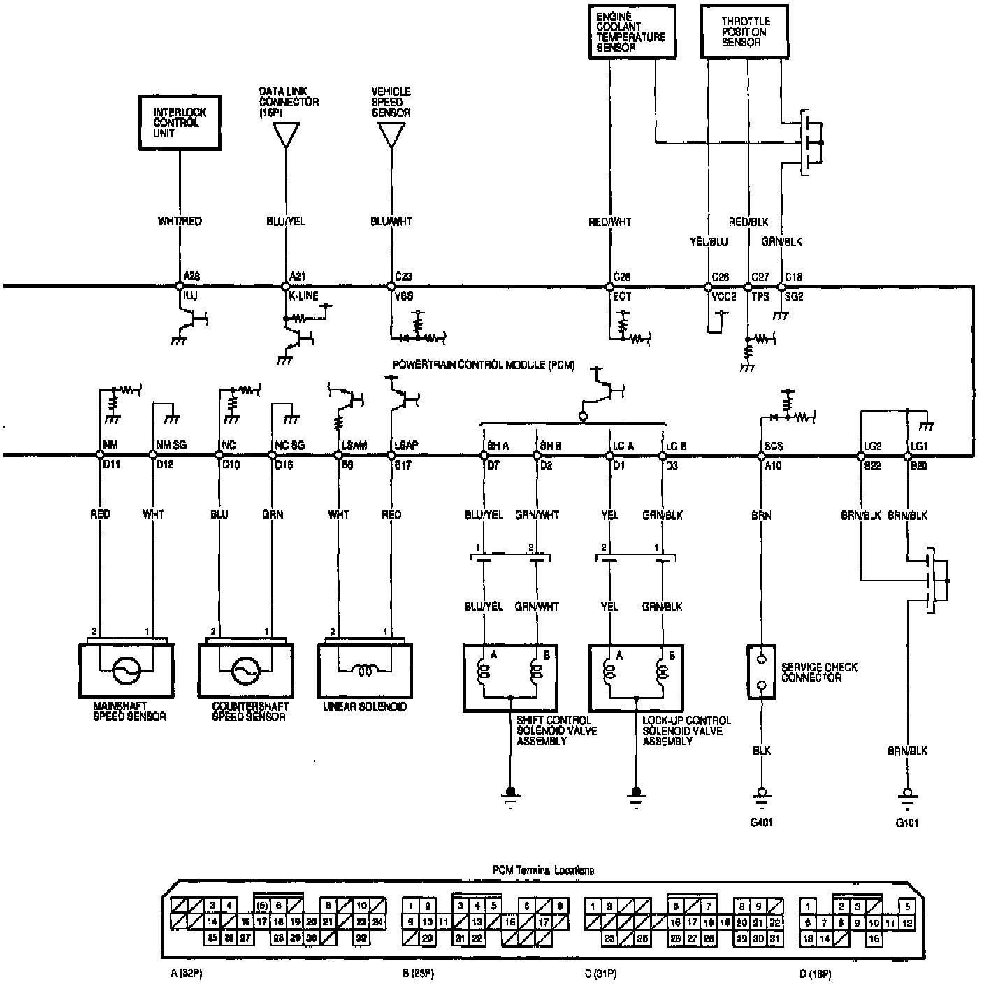 PCM Circuit Diagram (A/T Control System)