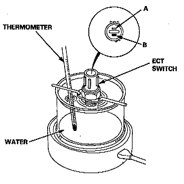 WARNING: Removing the ECT switch while the engine is hot can cause the coolant to spray out, seriously scalding you. Always let the engine and radiator cool down before removing the ECT switch.NOTE: Bleed air from the cooling system after installing the ECT switch.