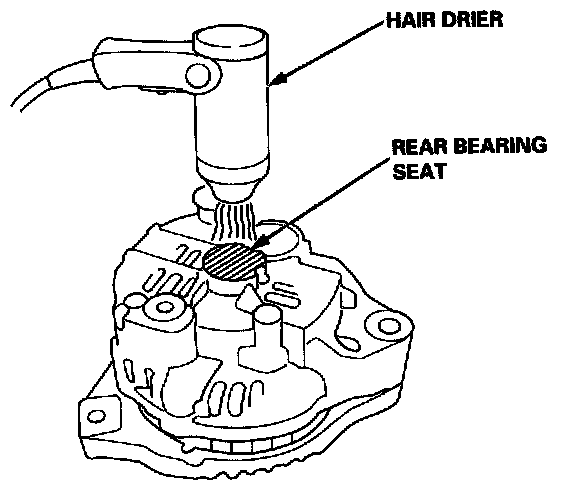 2. Heat the rear bearing seat with a 1,000 W hair drier for about five minutes (120 - 140 °F, 50 - 60 °C).