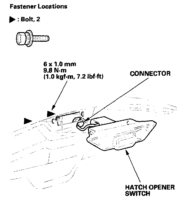 3. Install the hatch opener switch in the reverse order of removal, and note these items: