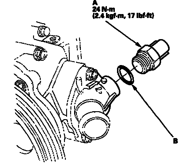 Install the radiator fen switch using a new O-ring (B).