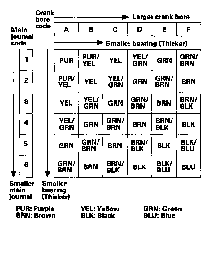 Note: Use the crank bore codes and crank journal codes to select the appropriate replacement bearings from the table.