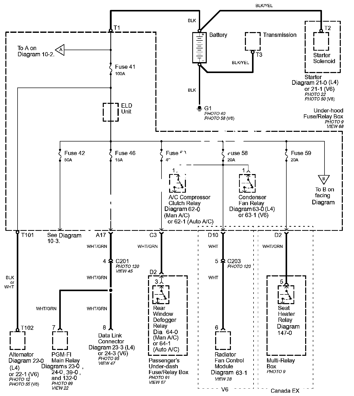 Power Distribution schematics show how power is supplied from the positive battery terminal to various circuits in the car. Refer to the Power Distribution diagram set to get a more detailed picture of how power is supplied to the circuit you're working on. Individual circuit schematics begin with a fuse. So if Power Distribution shows that an inoperative circuit and another circuit share a fuse, check a component in the other circuit. If it works, you know the fuse is good and power is available to the inoperative circuit.