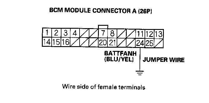 6. Connect the BCM module connector terminal A24 and body ground with a jumper wire.