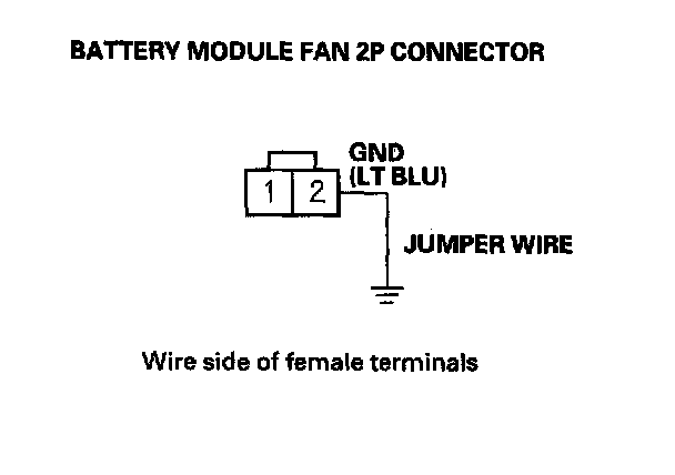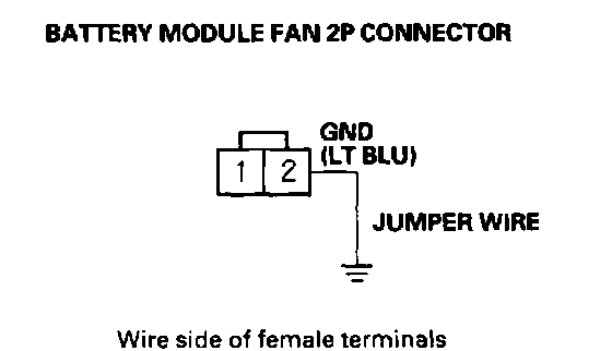 16. Connect the battery module fan 2P connector terminal No. 2 and body ground with a jumper wire.