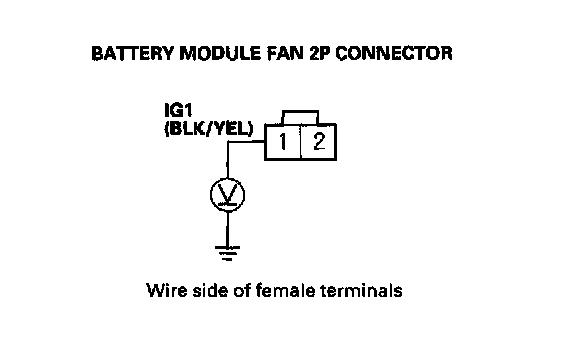 19. Measure voltage between body ground and the battery module fan 2P connector terminal No.1.