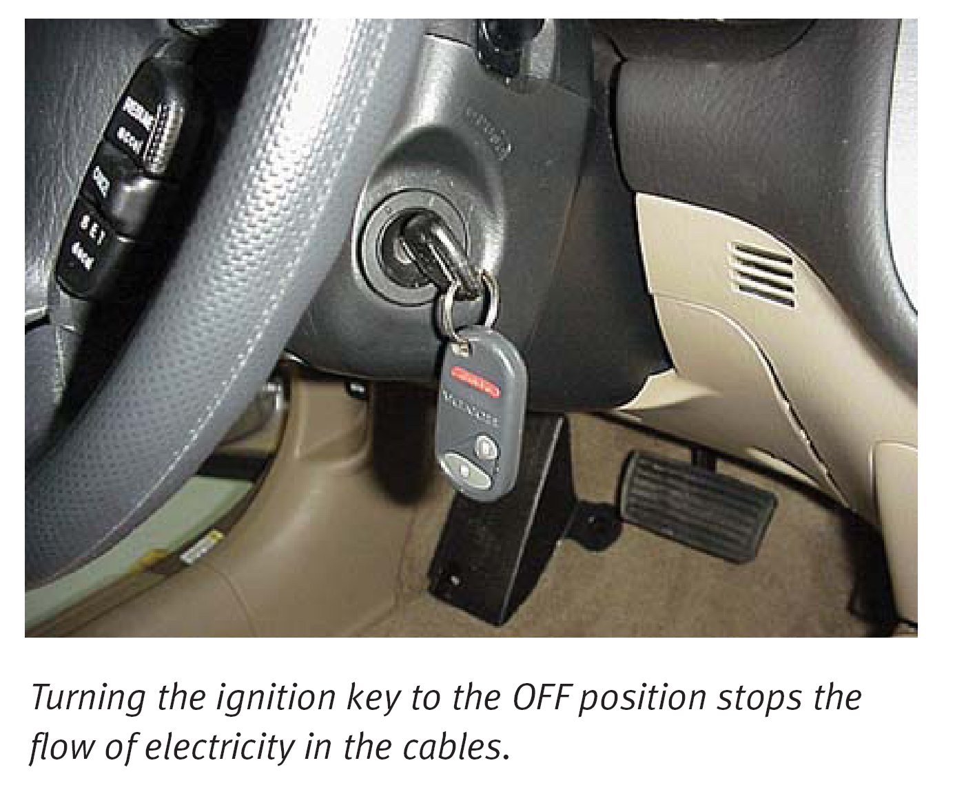 This simple action turns off the engine and the electric motor, preventing current flow into the cables. It also turns off power to the airbags and the seat belt tensioners.