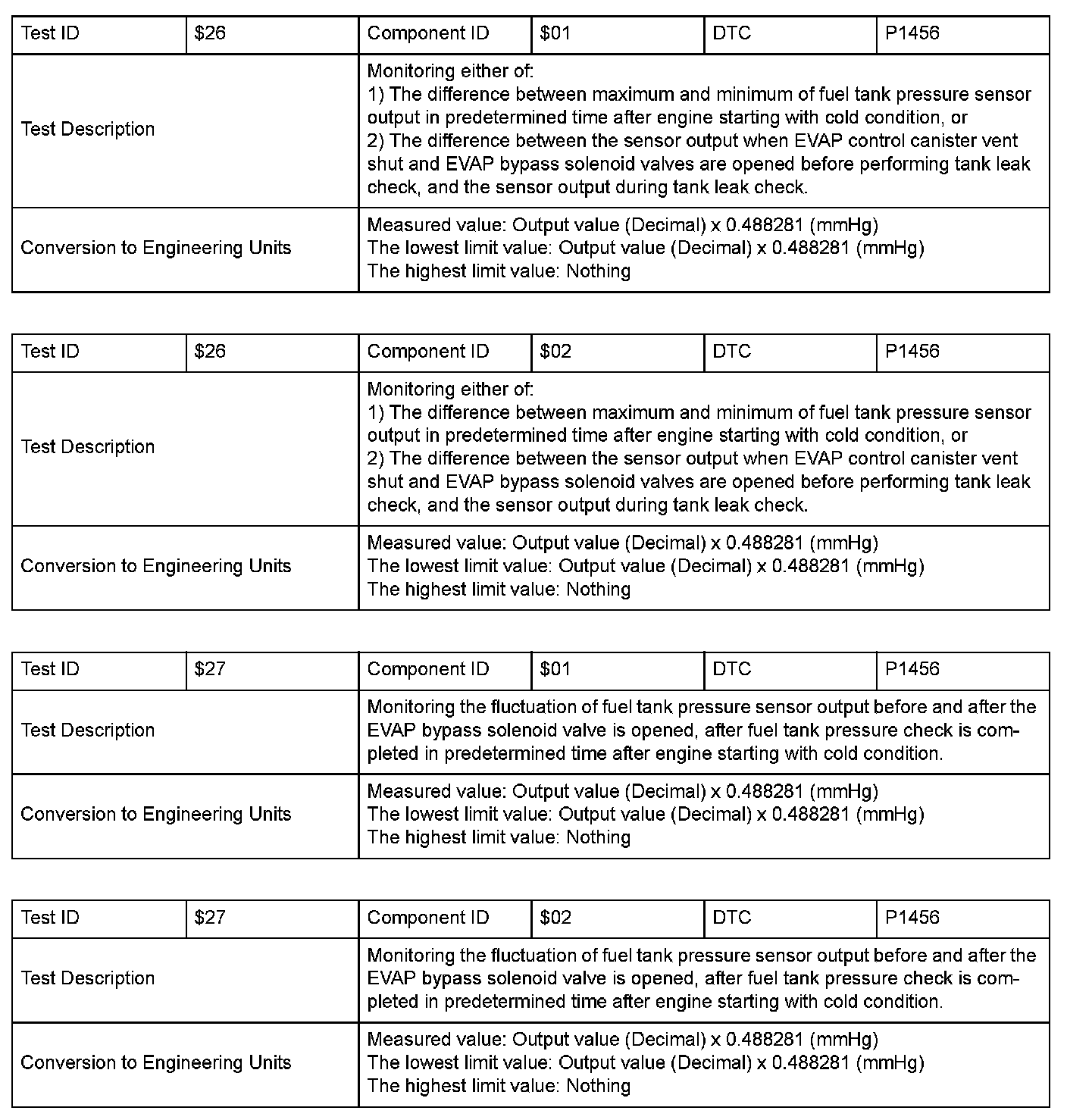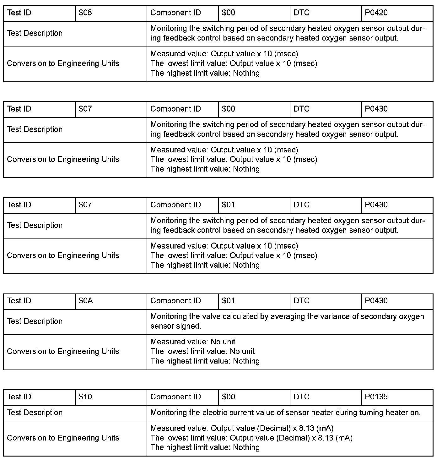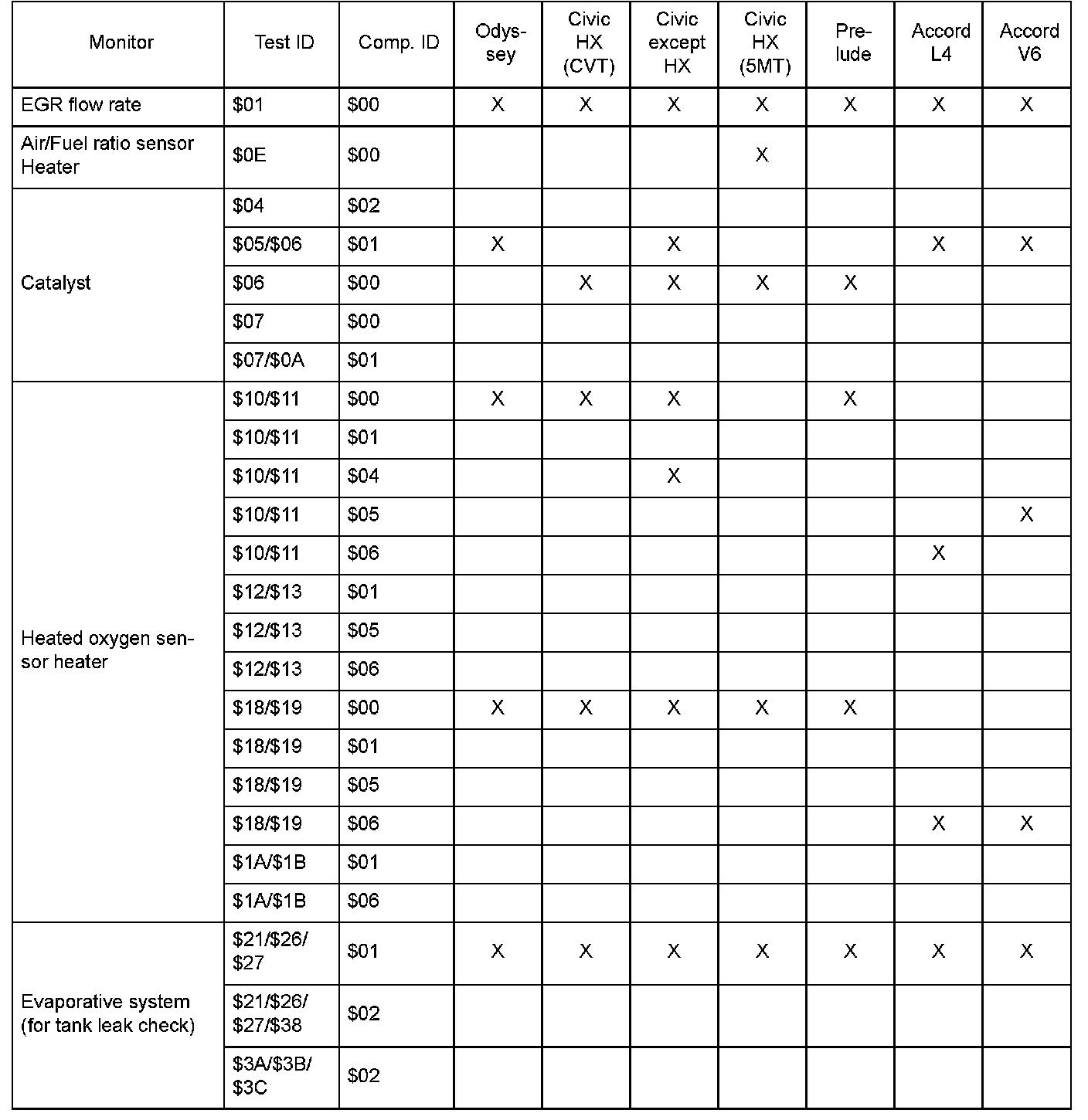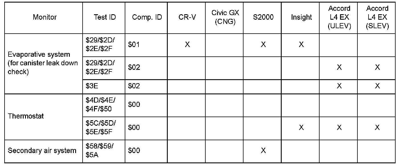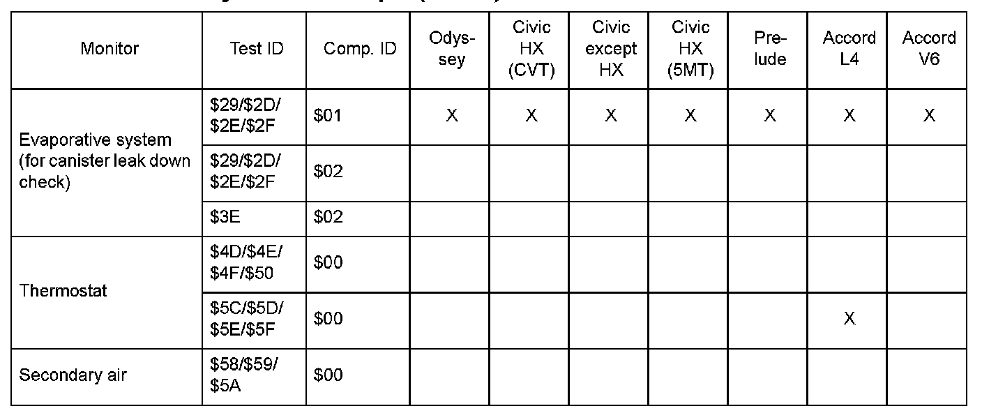 SAE J1979 Mode $06 Test Information: All 2000 Hondas