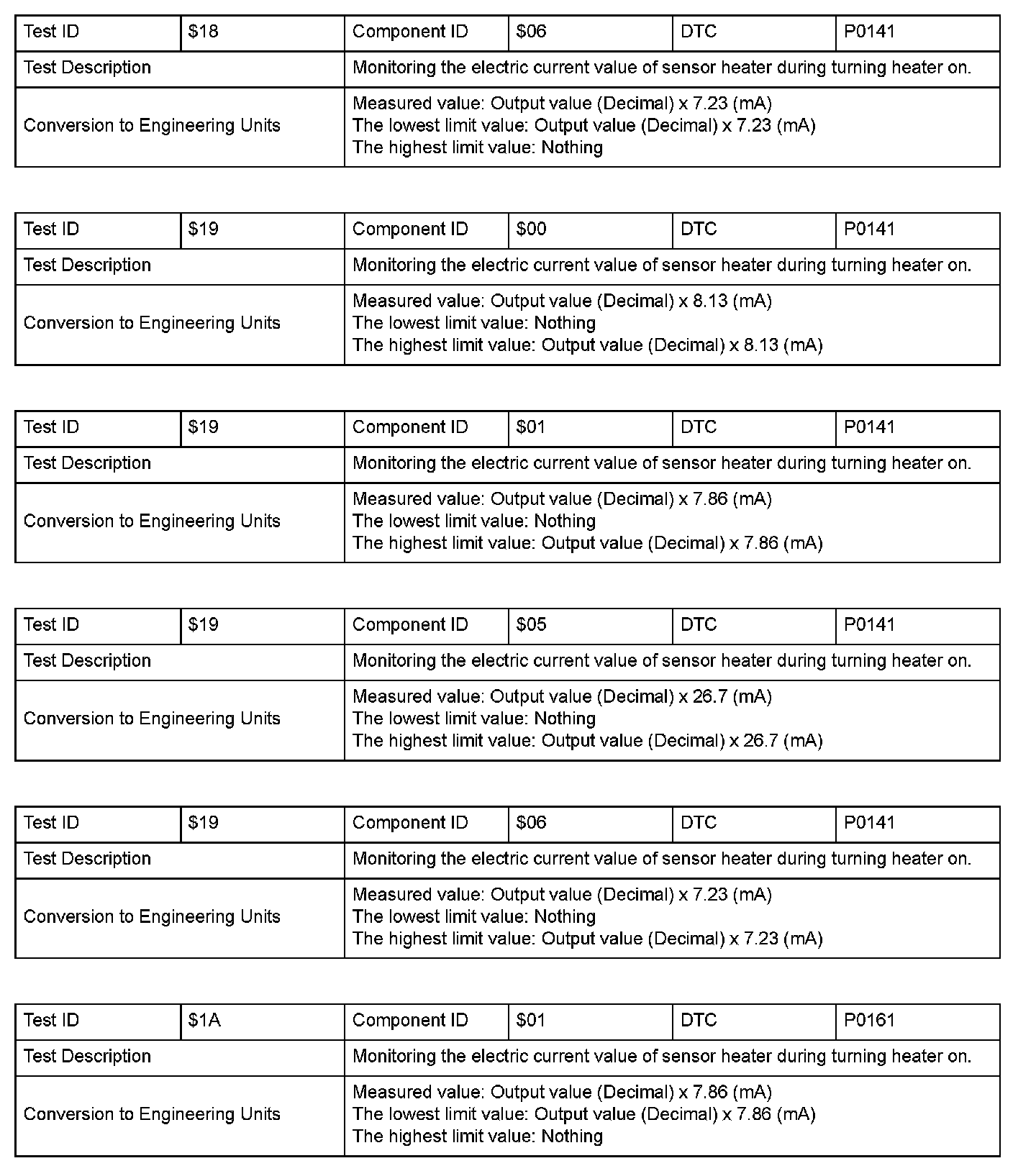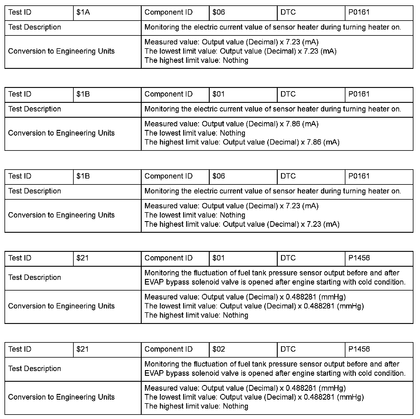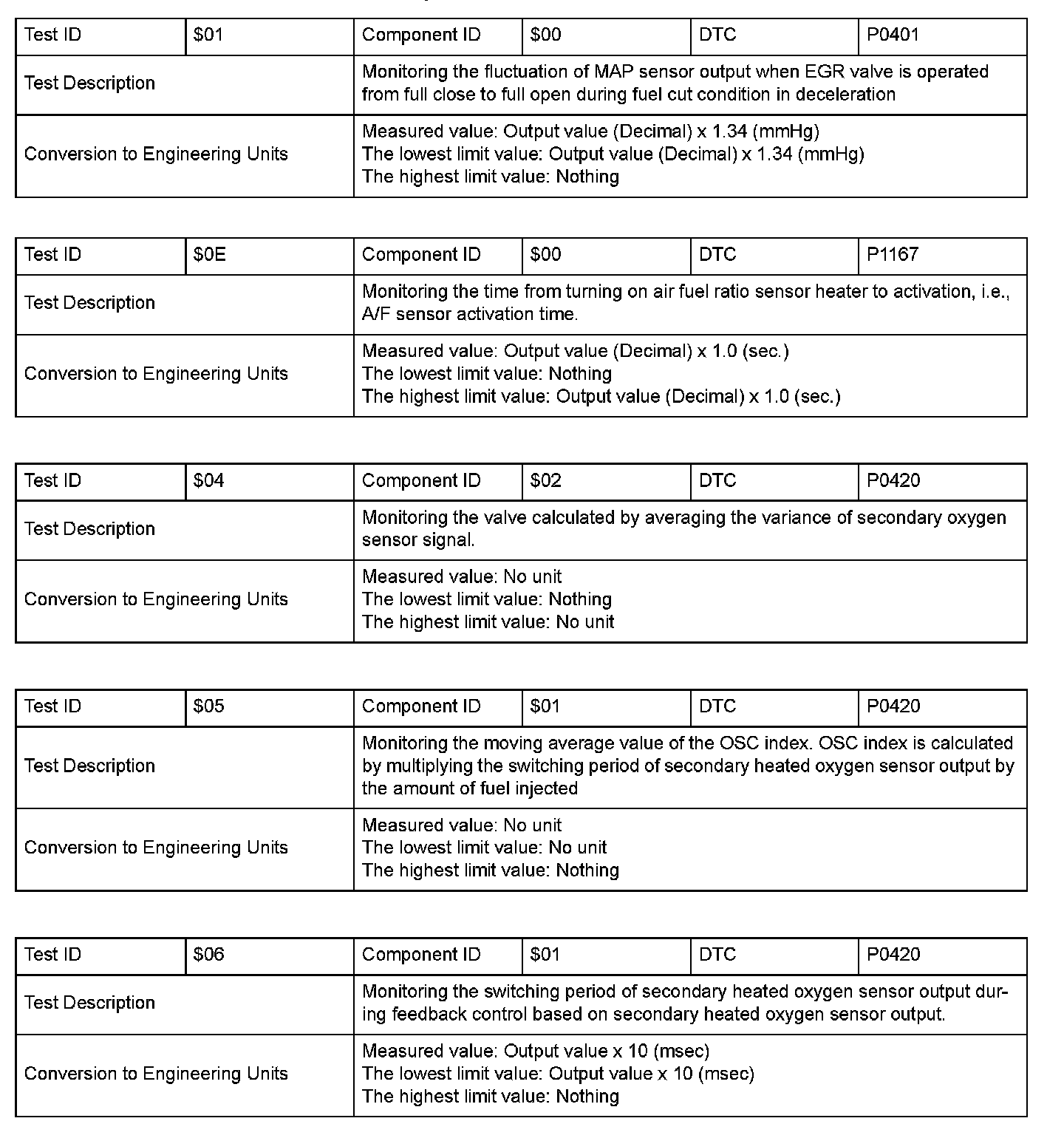 SAE J1979 Mode $06 Information by Test ID