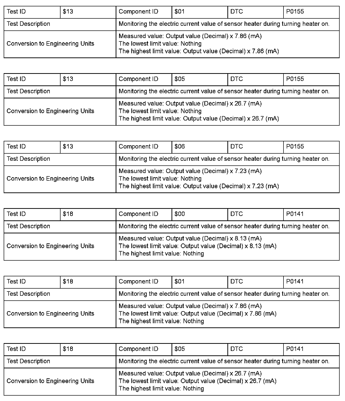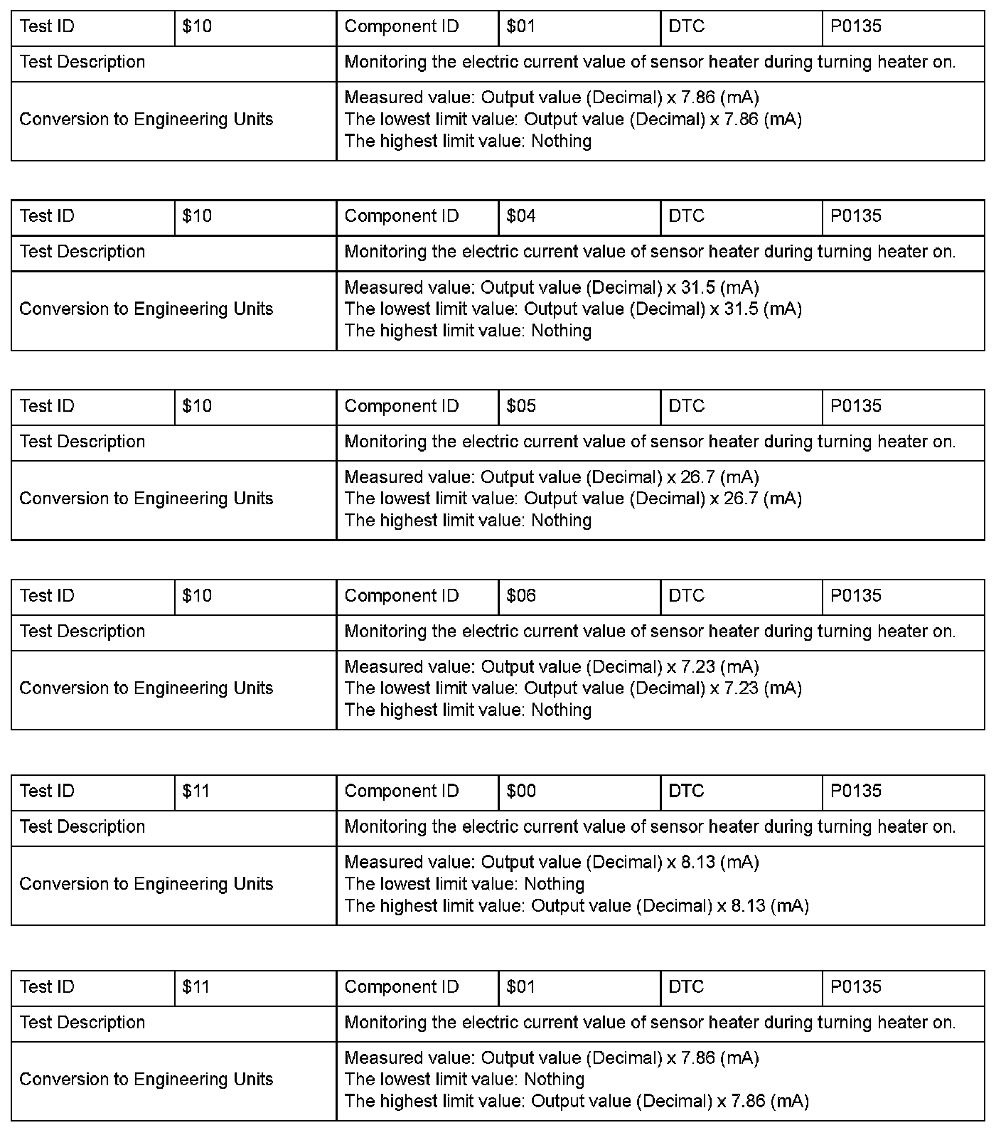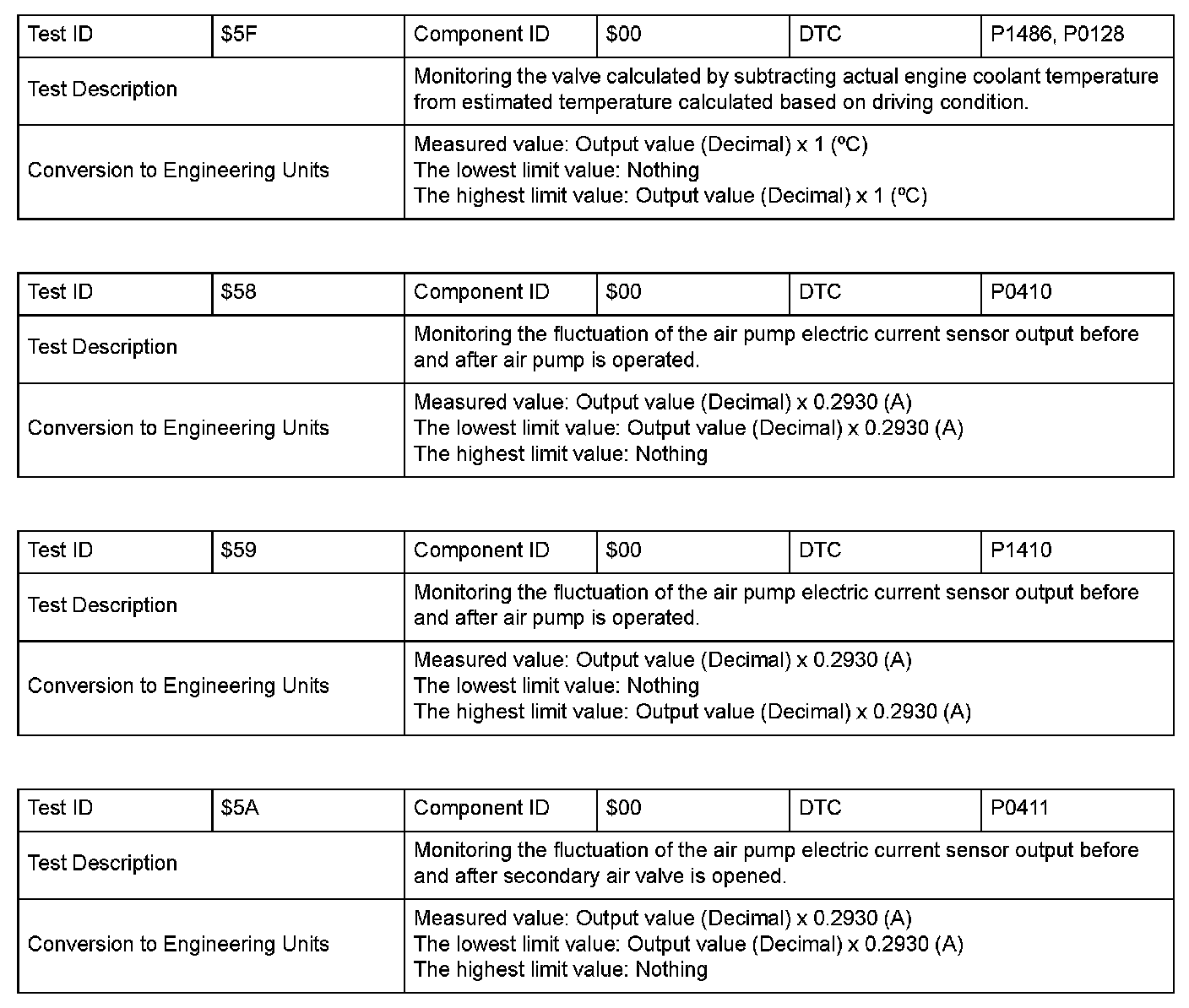 SAE J1979 Mode $06 Information by Test ID