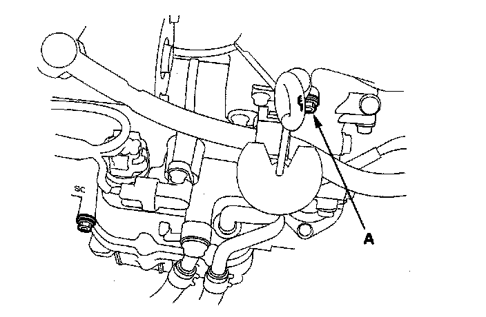 7. Connect the gauge (07406-0020400) to the reverse brake pressure inspection hole (A).