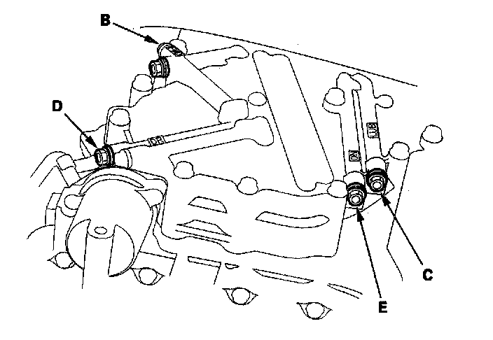 12. Shift to the [D] position, and measure forward clutch pressure at the forward clutch pressure inspection hole (B).