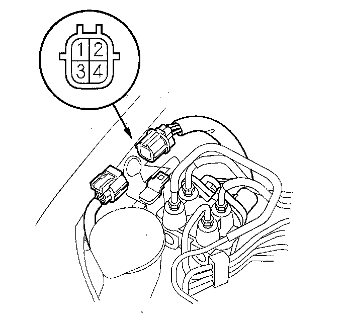 2. Measure the solenoid valve A resistance between the solenoid valve connector terminals No. 2 and No. 4, and measure the solenoid valve B resistance between terminals No. 1 and No. 3.
