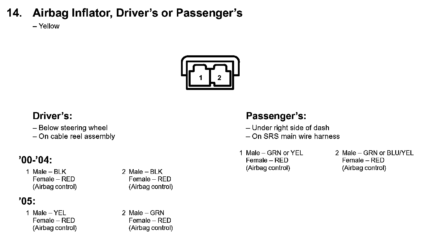 14. Airbag Inflator, Driver's Or Passenger's: