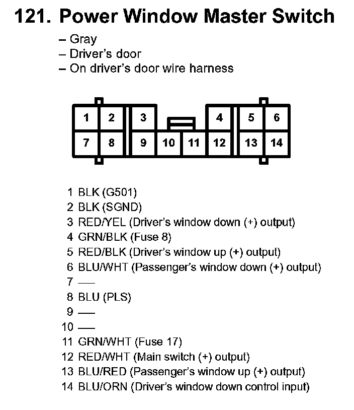 121. Power Window Master Switch:
