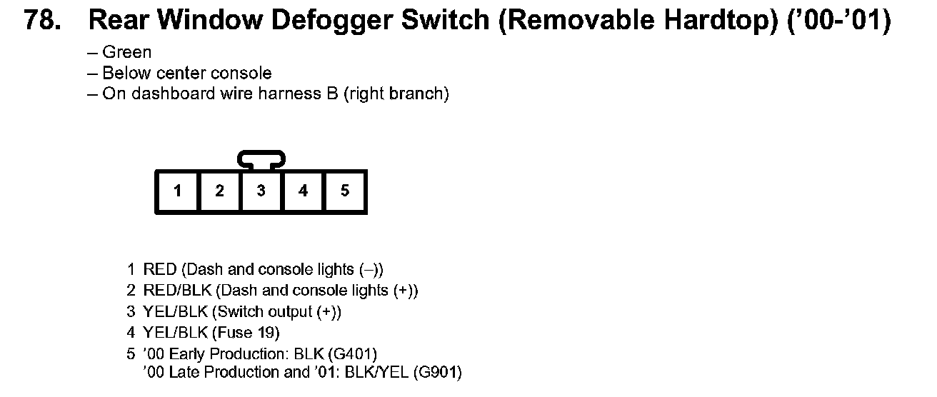 78. Rear Window Defogger Switch (Removable Hardtop):