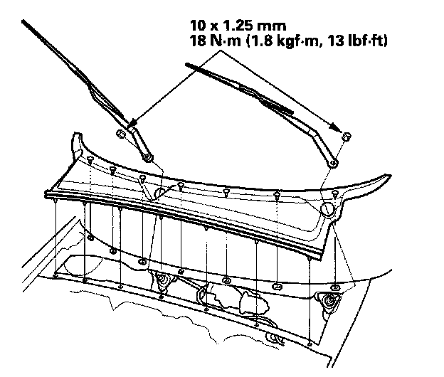 Wiper Motor Replacement1. Open the hood, and remove the cap nuts and the wiper arms.