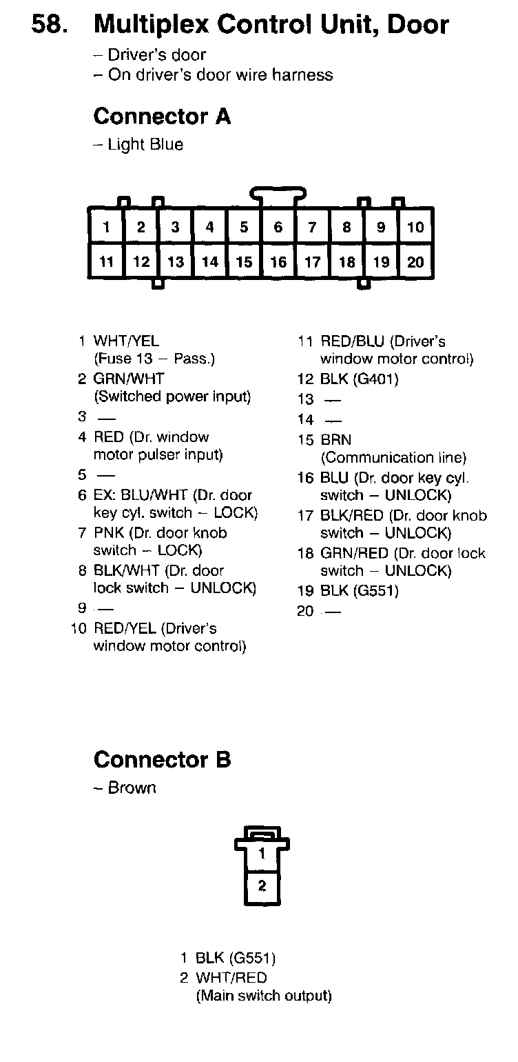 58. Multiplex Control Unit, Door Connectors A, B: