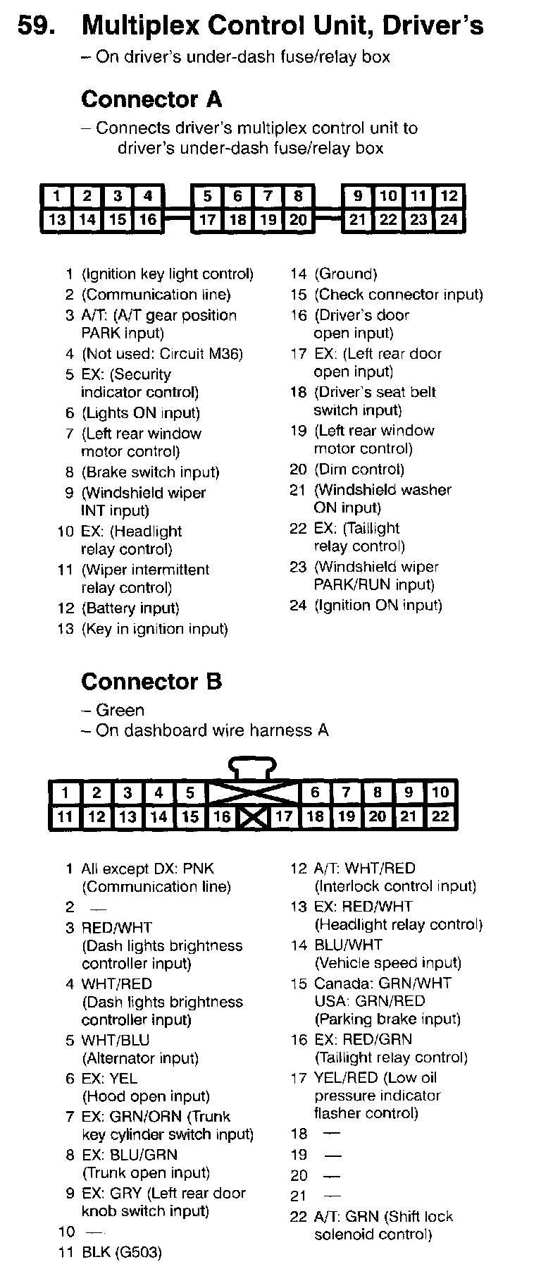 59. Multiplex Control Unit, Driver's Connectors A, B: