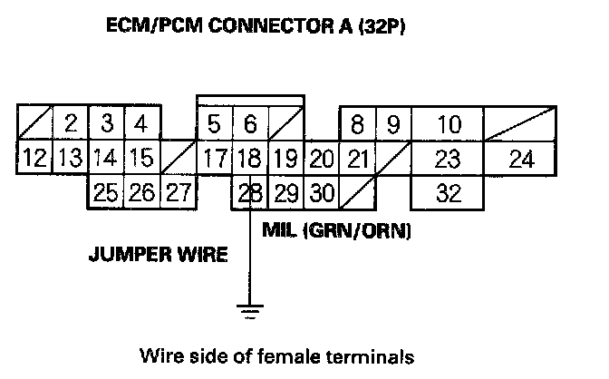 8. Turn the ignition switch OFF, and connect ECM/PCM connector terminal A18 to body ground with a jumper wire.