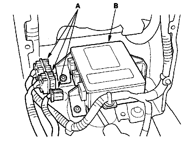 5. Disconnect the connectors (A) from the SRS unit (B).