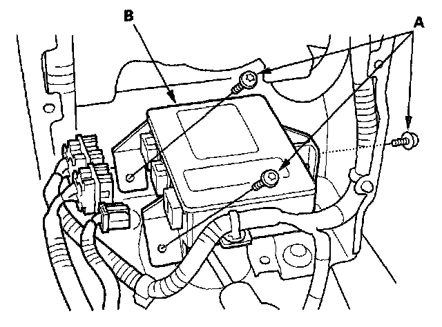 6. Remove the three Torx bolts (A) from the SRS unit (B), than pull out the SRS unit from the bracket.