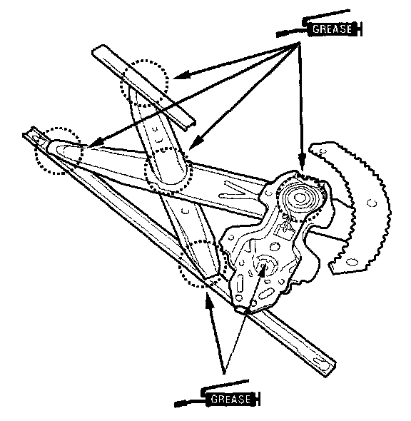 7. Install the glass and regulator in the reverse order of removal, and note these items: