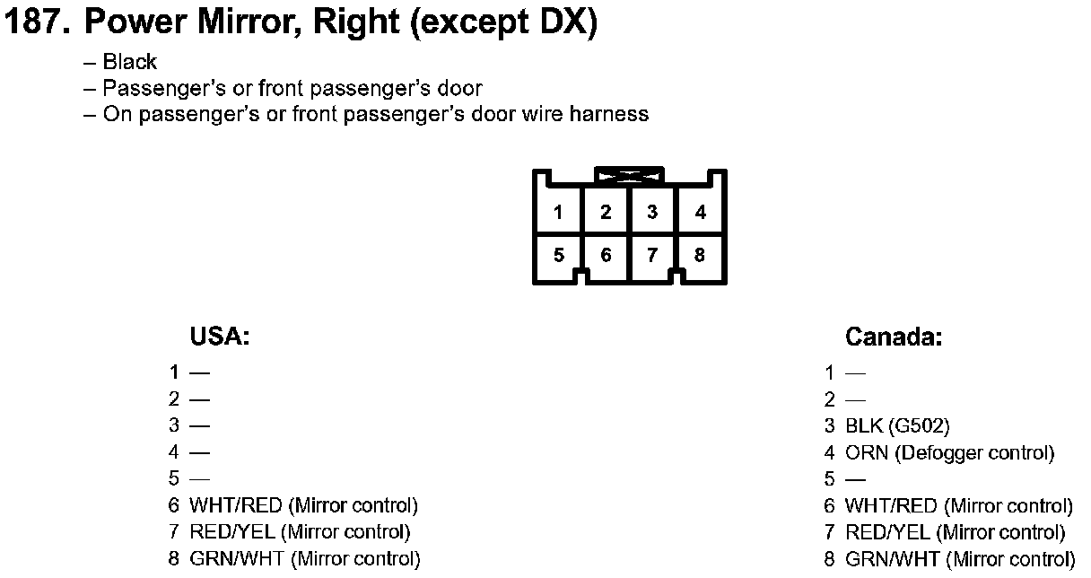 187. Power Mirror, Right (except DX):