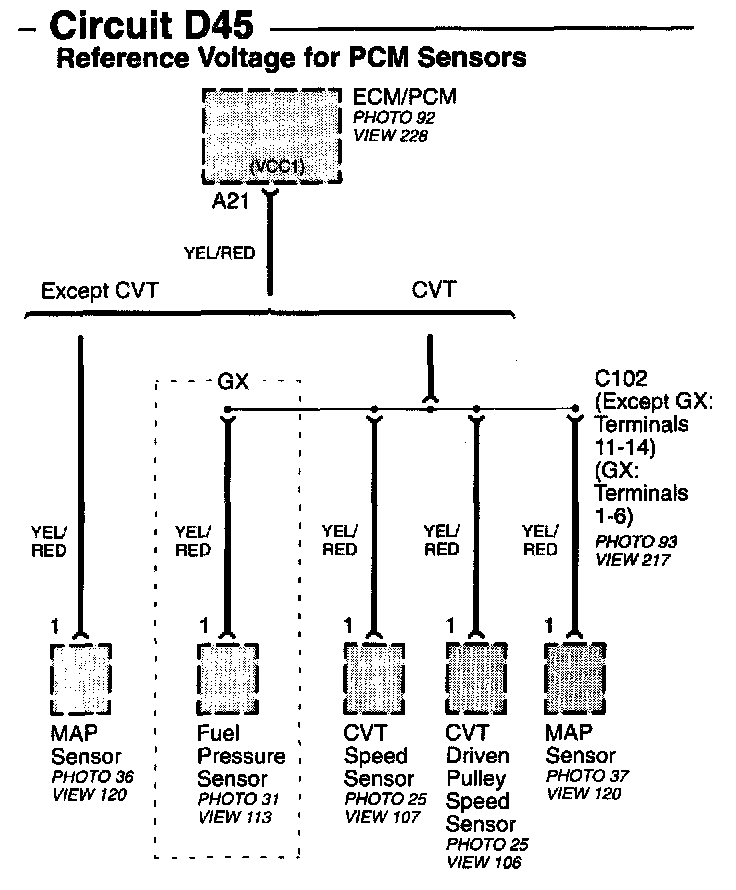 Circuit D45 - Reference Voltage For PCM Sensors Image 15-6b: