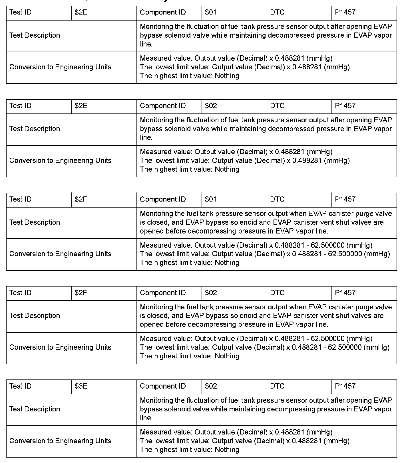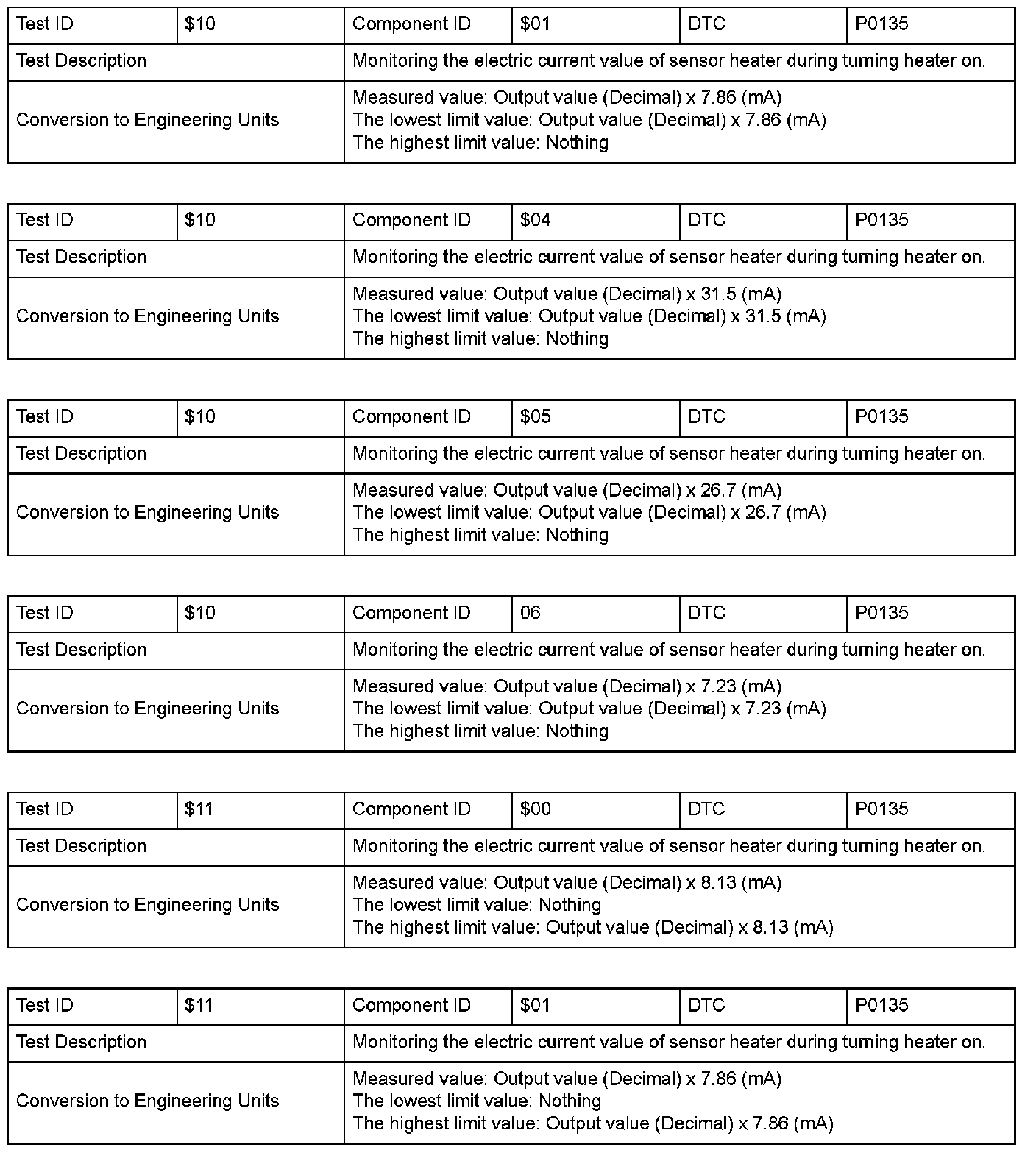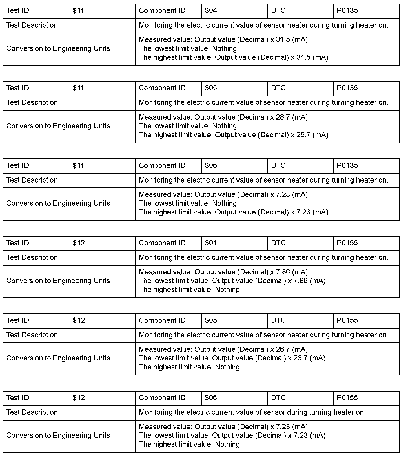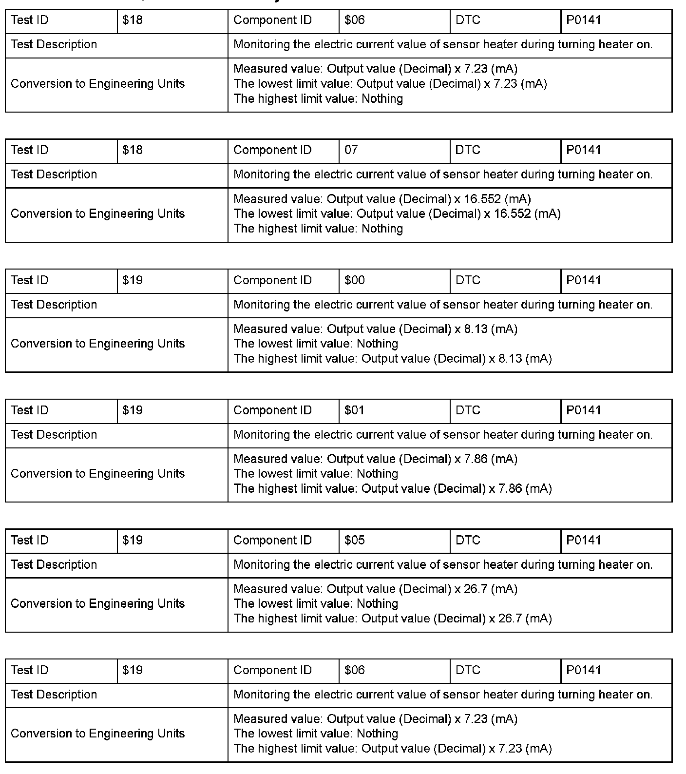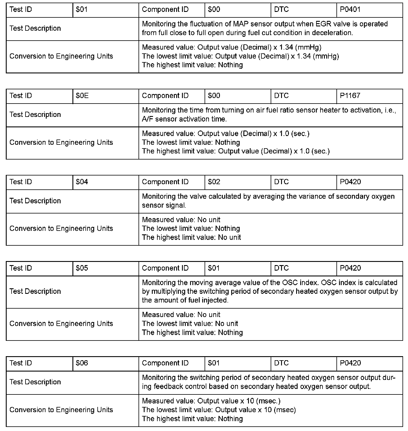 SAE J1979 Mode $06 Test Information: All 2001 Hondas