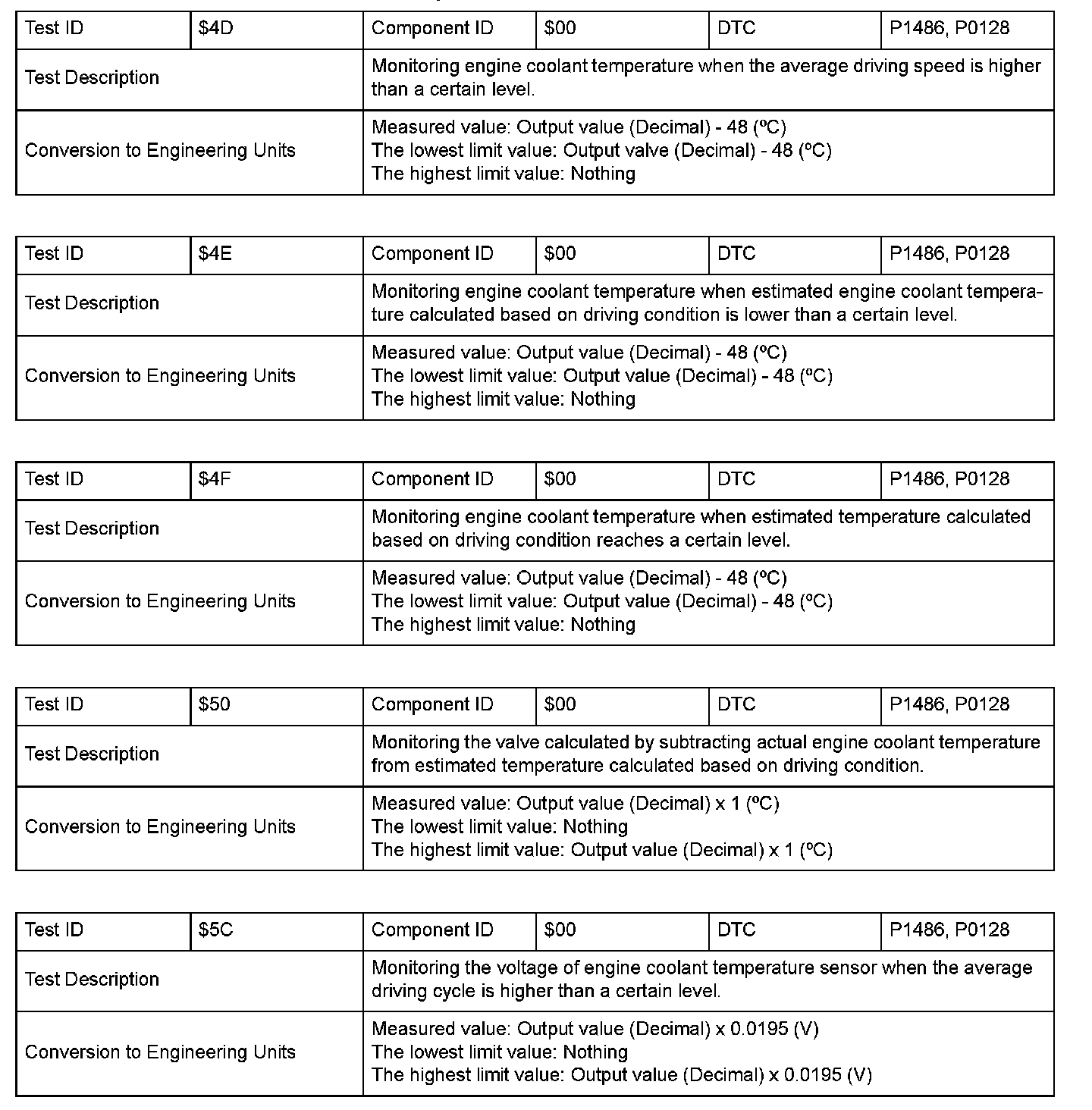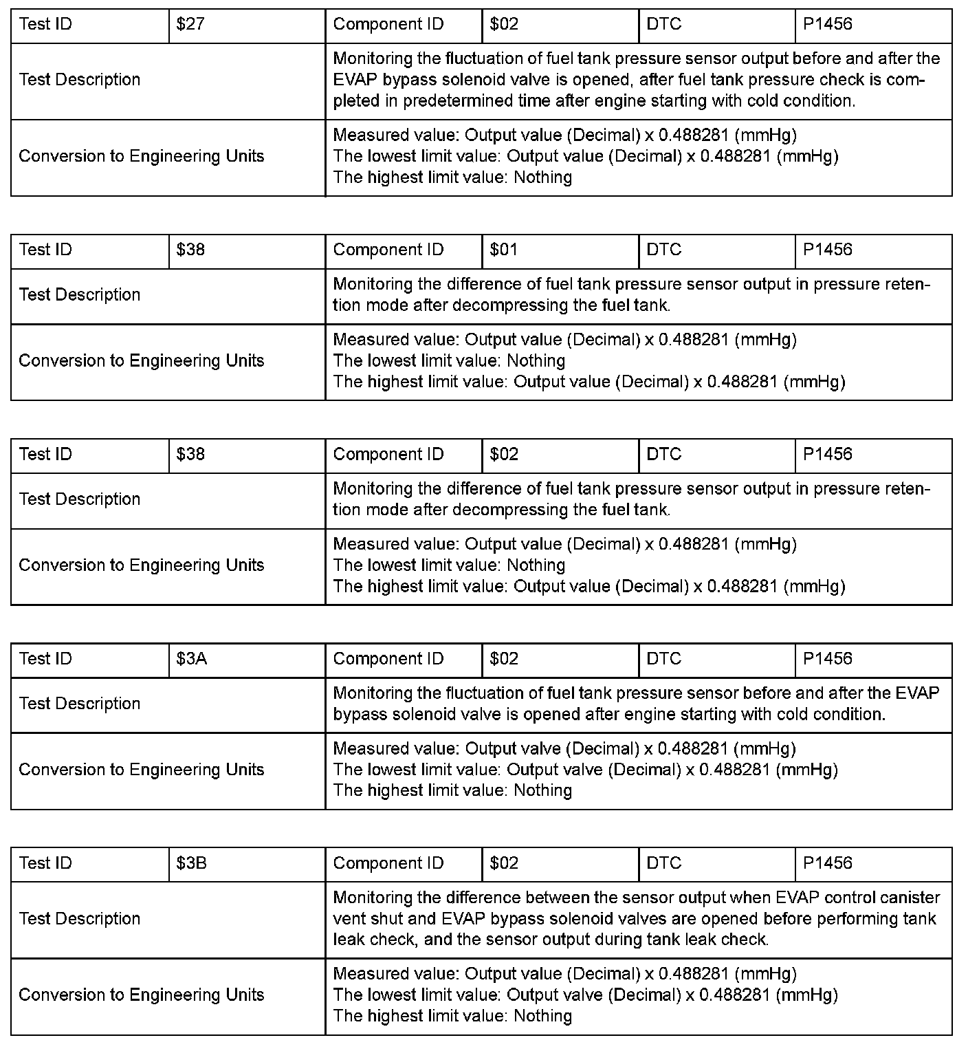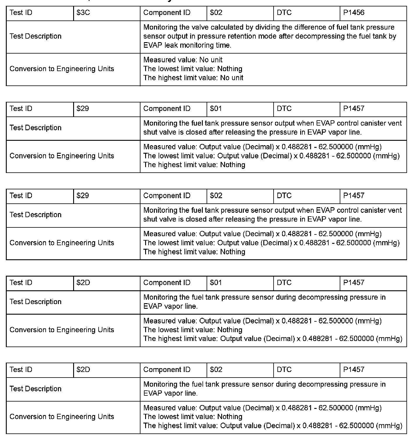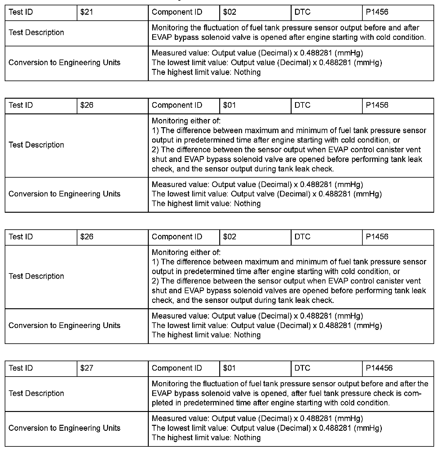 SAE J1979 Mode $06 Test Information: All 2001 Hondas