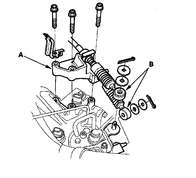 10. First remove the cable bracket (A), then disconnect the cables (B) from the top of the transmission housing. Carefully remove both cables and the bracket together so as not to bend the cables.