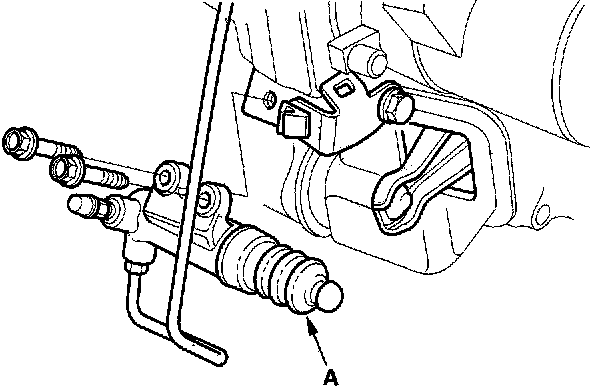 12. Remove the slave cylinder (A). Do not operate the clutch pedal once the slave cylinder has been removed.