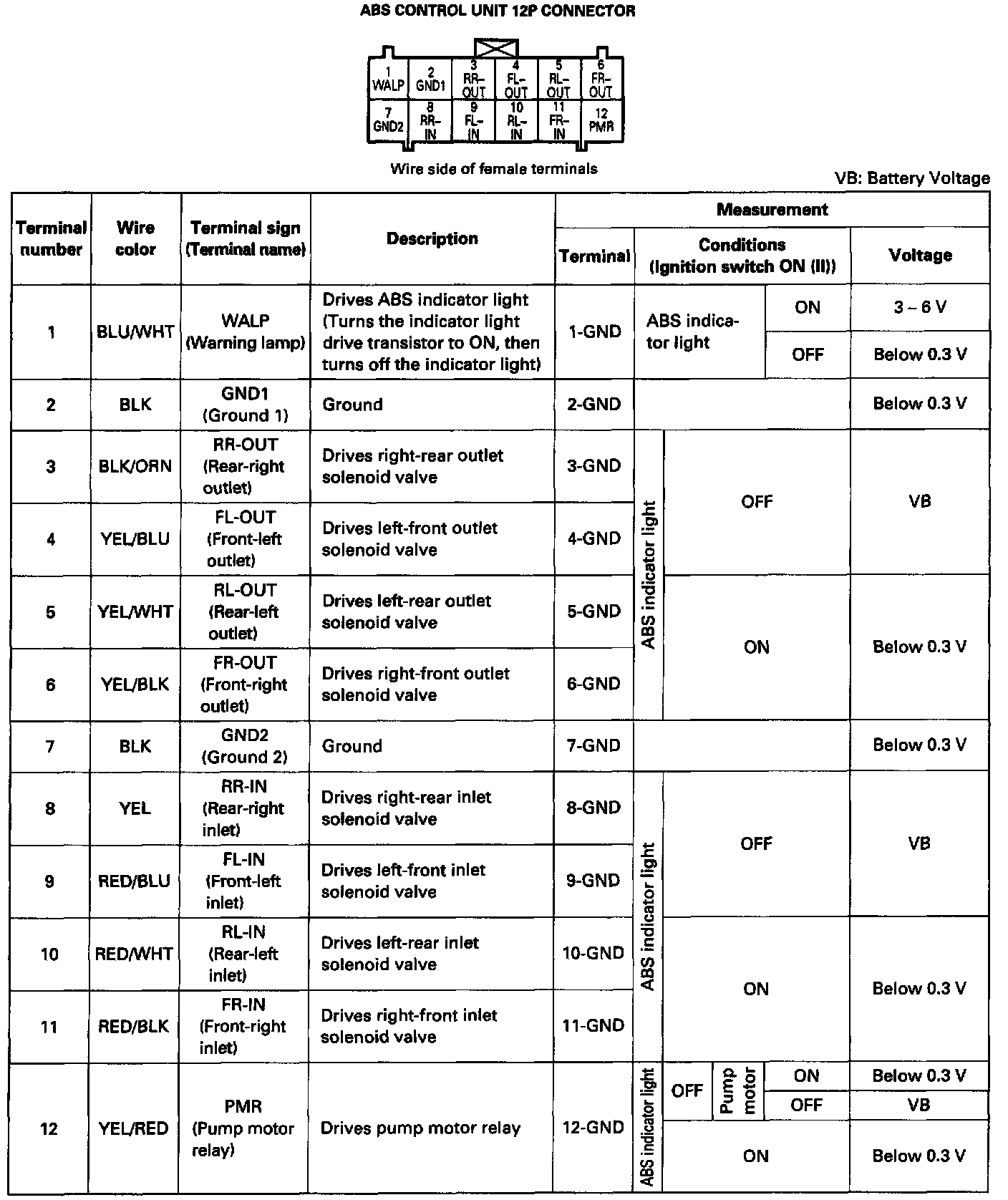 ABS Control Unit 12P Connector