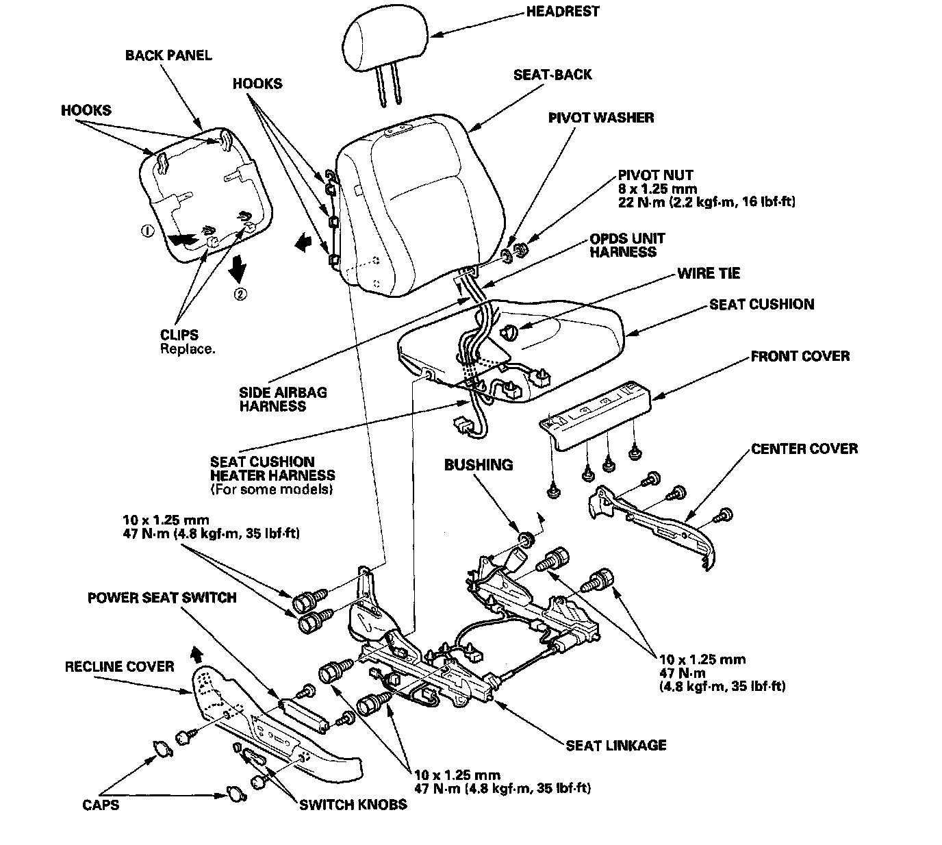 Front Seat Disassembly/Reassembly - 4-Way PowerSRS components are located in this area. Review the SRS component locations, and precautions and procedures in the SRS section before performing repairs or service.