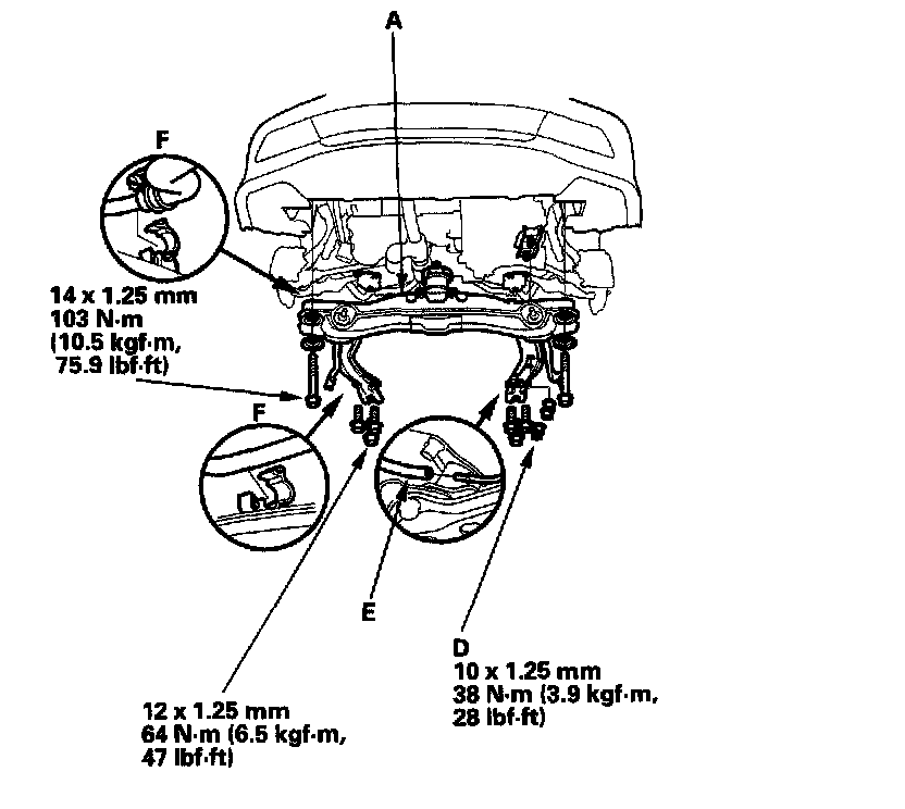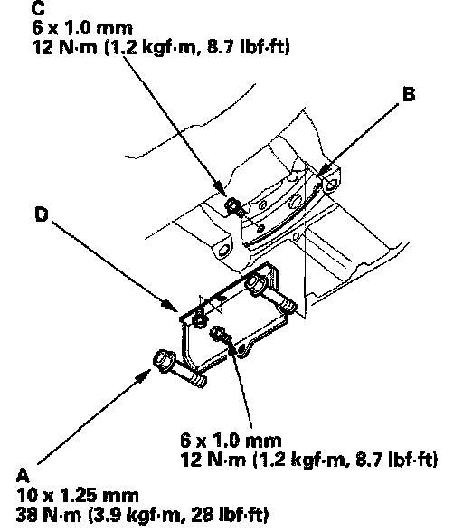 21. Install the transmission lower mount nuts (D).