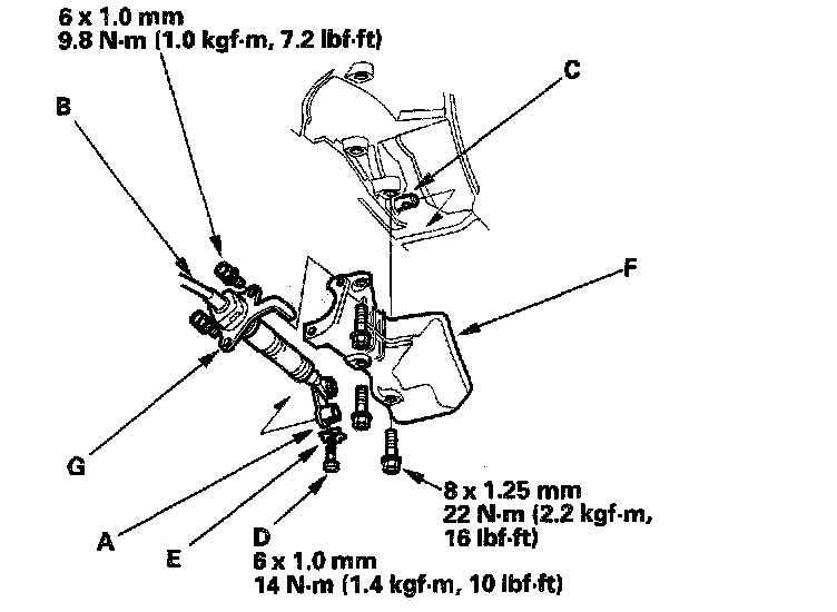 15. Install the shift cable cover (F), then install the shift cable holder (G) on the shift cable cover.
