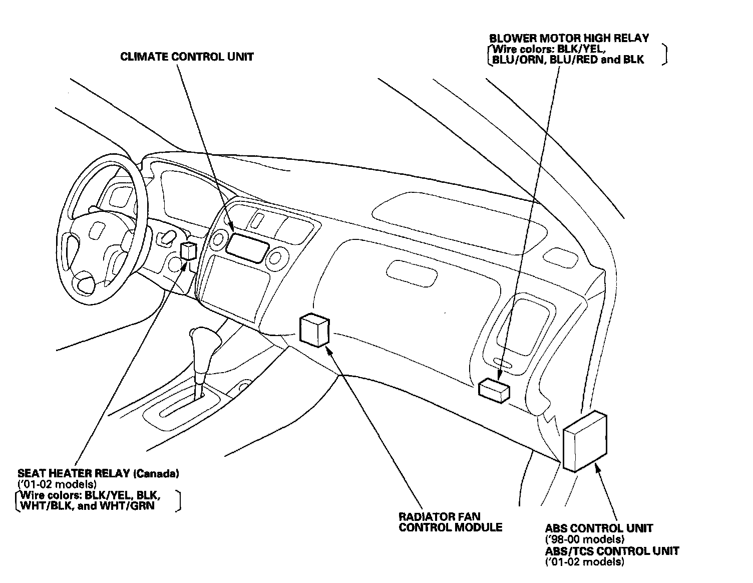 Relay And Control Unit Locations - Dashboard: