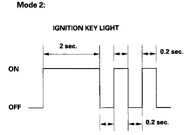 4. Check self-diagnosis function Mode 1 for a diagnostic trouble code (DTC). After about 5 seconds, the ignition key light should come on and the beeper should beep for 2 seconds, then go off for 0.2 seconds, then blink and beep for 0.2 seconds. This means that you are in Mode 1 of the self-diagnosis function.