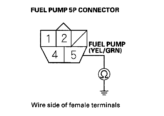 33. Check for continuity between fuel pump 5P connector terminal No.5 and body ground.