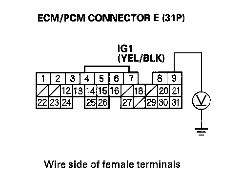 25. Check for continuity between ECM/PCM connector terminal E9 and body ground.
