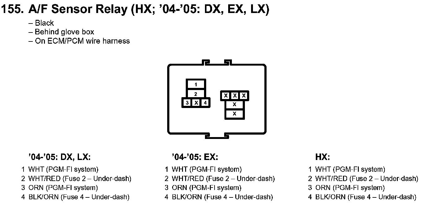 155. A/F Sensor Relay (HX; '04-'05: DX, EX, LX):