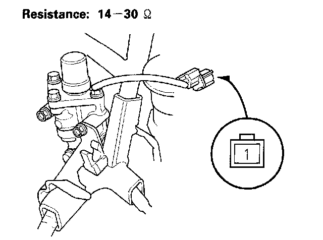 3. Measure resistance between the VTEC solenoid valve 1P connector terminal No.1 and body ground.